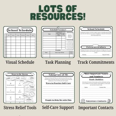 Includes helpful pages to write out your school schedule, teacher contacts, study partners, and important things to remember.