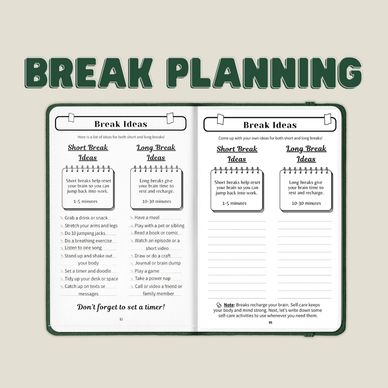 Guided prompts to help students plan short breaks while working—encouraging healthy study habits and better focus.